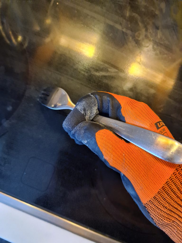 The knife is placed as shown here. Once positioned like that one can exert a lot of force on the knife – no problem.