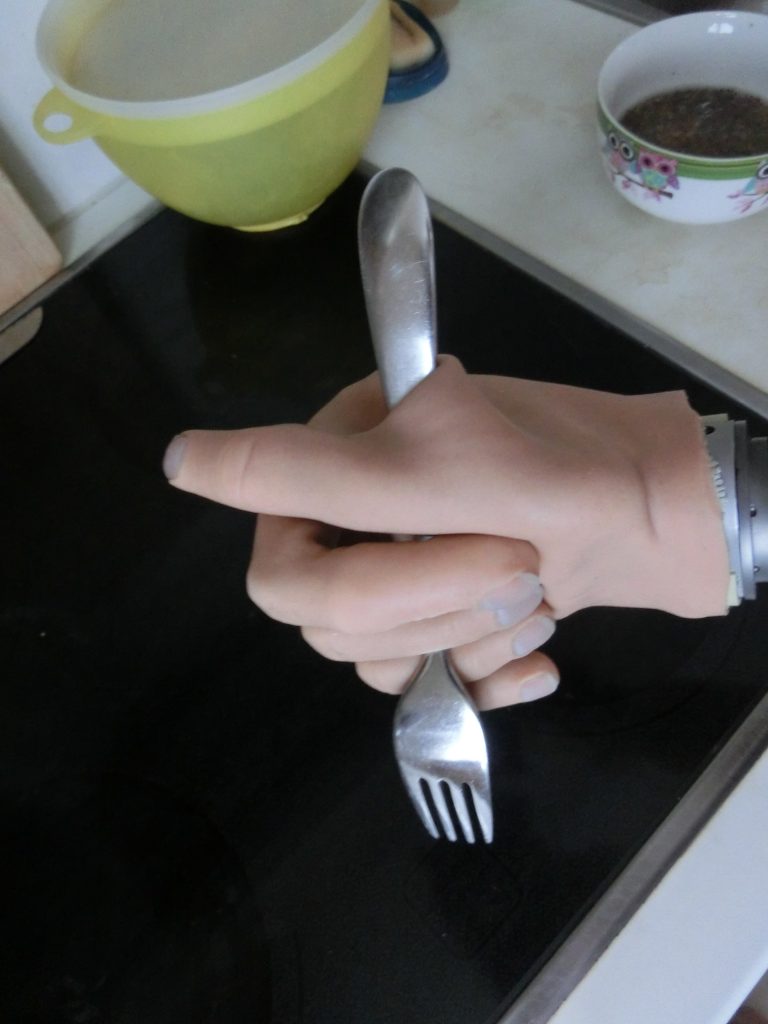 It seems that it is not always obvious how to go about things like using a knife to cut up stuff or how to best hold knife or fork with the prosthetic arm. We had that earlier [link], and now it is a subject once again.