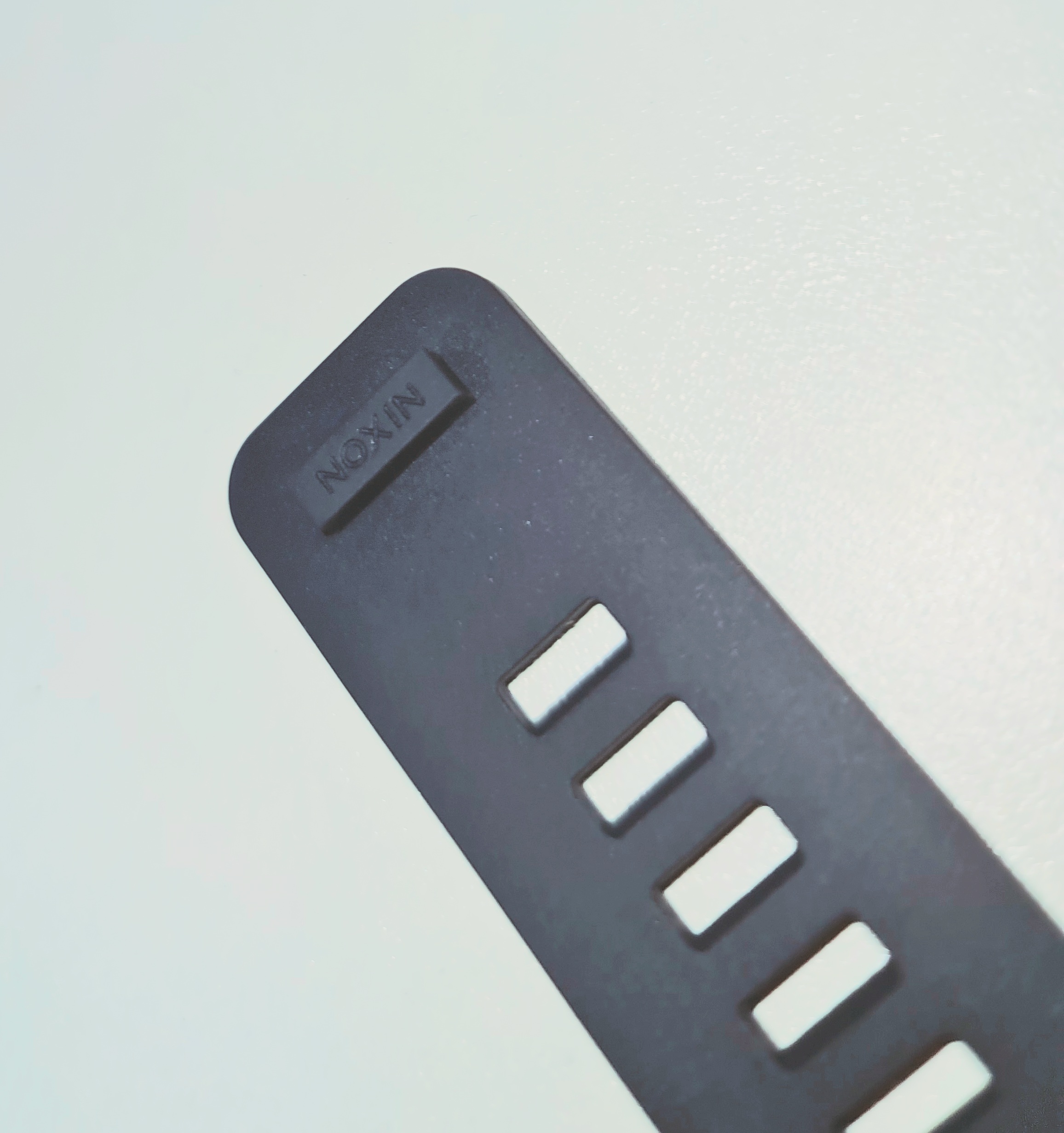 Here is a rubber band by NOXIN/NIXON (depending on what direction you read the text on the band parts) that has a rectangular cut-out in the band loop to allow the band end with a rectangular protrusion to fit in.
