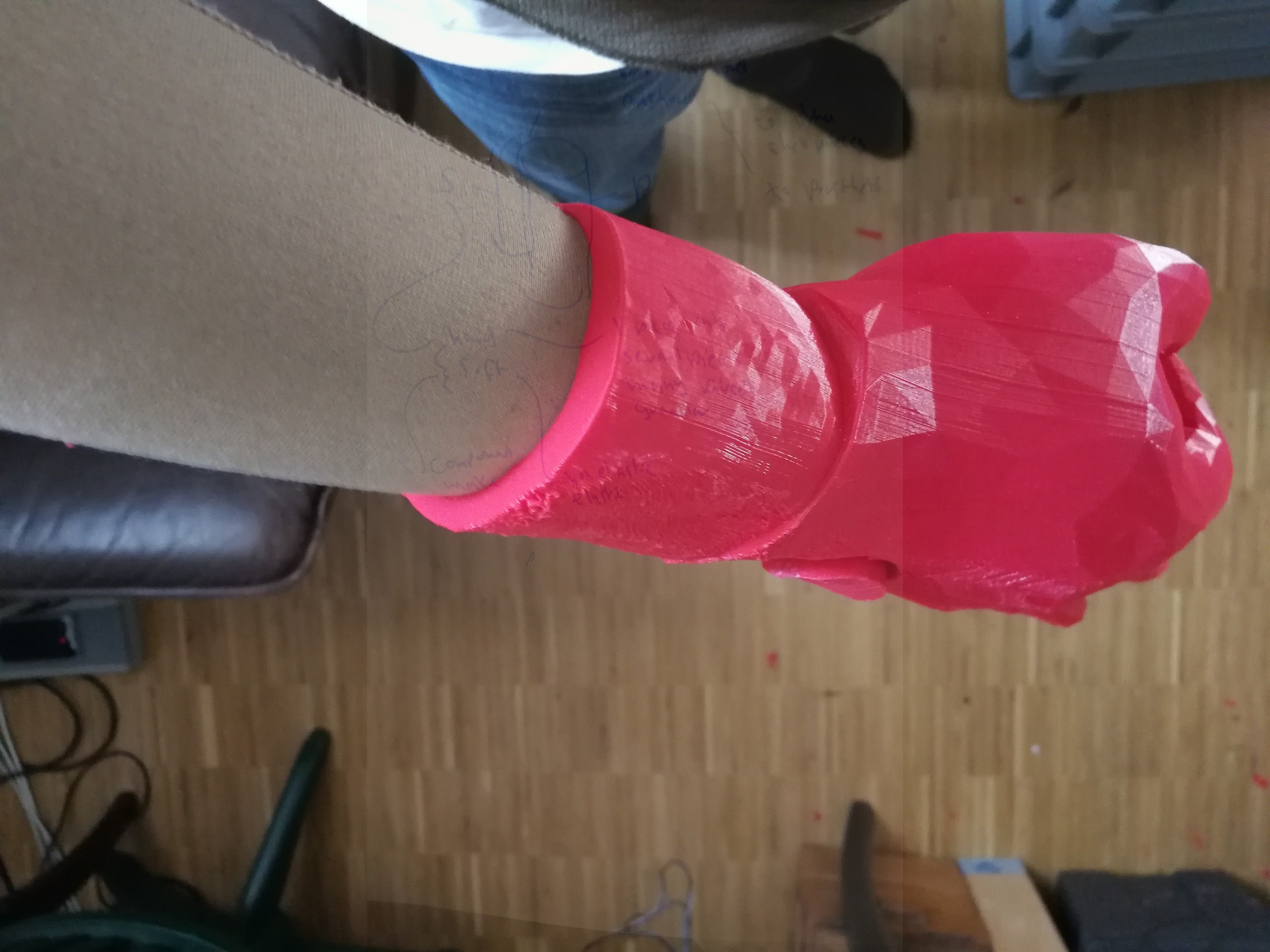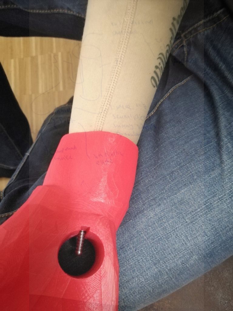 I designed a first socket that would fit my “stump plus liner” (didn’t even need to use the 3D scanner for that) and then I reduced it to a very short socket as to allow for wiggle and swinging, to approximate Becky Pilditch and Holly Franklin’s “gestural hand series” (LINK) who first came up with that and who also provided first research and testing into a sensible impedance.