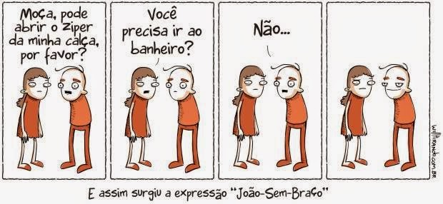 - [link] According to the Almanaque Brasil, the supposed origin of the term Joao-sem-arm to designate lazy people who flee from their responsibilities dates back to historical events, especially when countries faced constant wars. In Portugal, for example, the mutilated and wounded were exempted from working or fighting in battles, due to their condition. For this reason, many healthy men assumed that they did not have their members either, and so escaped their obligations to the country. Over time, the expression that was previously interpreted literally came to be considered a metaphor, referring to people who pretend to be disguised to avoid fulfilling tasks, for example.