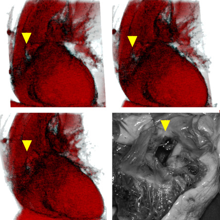 Part of my initial work within this project dealt with visualising cardiac pathology of forensic relevance. While it was still news to say that such a perforating laceration of the base of the heart could not be easily found on CT or MR images (see above citation – poster for San Diego), it became then news to say that it is possible to visualise this laceration. The company selling IDL in Germany, Switzerland and Austria (Creaso in Gilching out of Munich, Germany) also thought this was good news on their (now defunct) news page.
